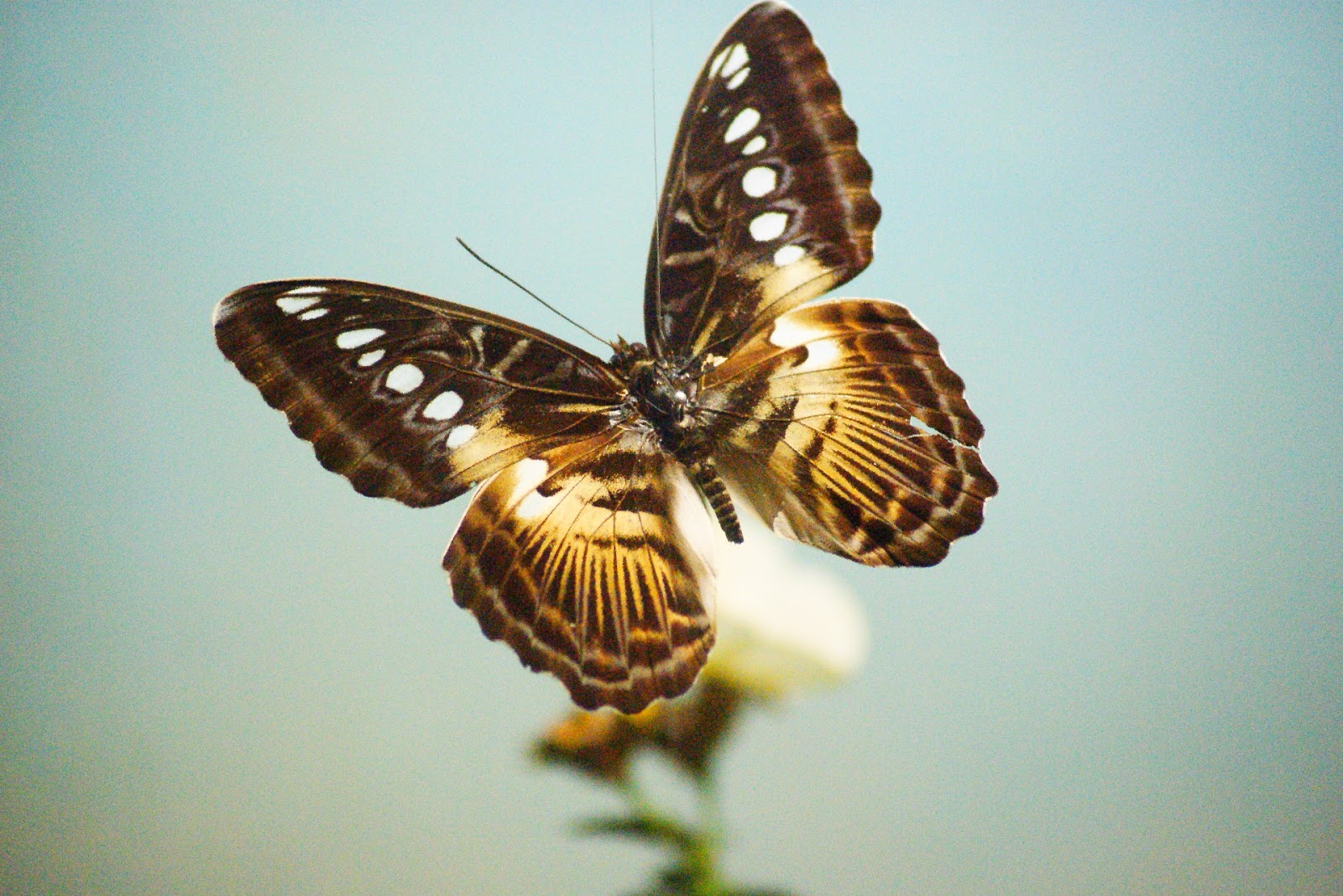 A preserved butterfly in Museum Zoologi. Flightless, yet posed like it's flying.